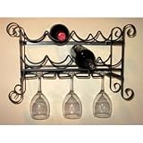This sturdy metal wine rack offers easy storage and display of 8 bottles and 6 wine glasses. This wine rack makes a perfect addition to any kitchen or dining room. It mounts easily to the wall in order to maximize available space..../ Concept Housewares Solid Metal Wine and Glass Wall Rack / Glass Storage